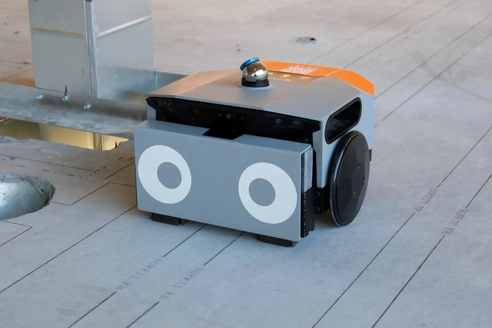 Dusty Robotics automates construction layout marking on concrete slabs. The robot reads digital blueprints and autonomously marks walls, doors, electrical boxes, and plumbing locations directly on floors.